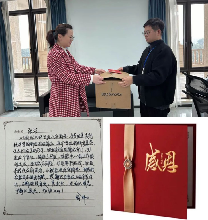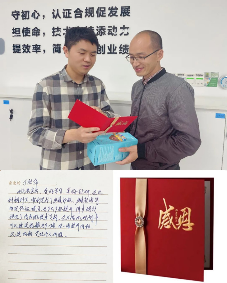 海陵衷心對(duì)他們的付出表示感謝,并為其準(zhǔn)備了感恩卡和禮物,直屬領(lǐng)導(dǎo)“驚喜出現(xiàn)”,將手寫(xiě)感謝卡和禮物交給他們!