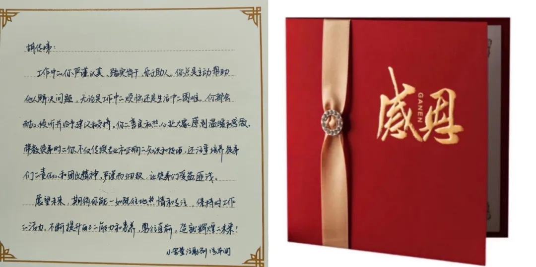 海陵衷心對(duì)他們的付出表示感謝,并為其準(zhǔn)備了感恩卡和禮物,直屬領(lǐng)導(dǎo)“驚喜出現(xiàn)”,將手寫感謝卡和禮物交給他們!