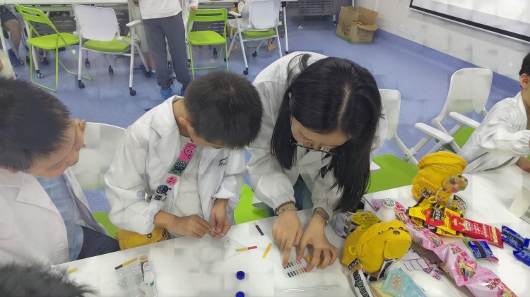 2. 淀粉遇碘變藍(lán)色:孩子們見(jiàn)證了淀粉溶液在加入碘后顏色的變化,了解到這一化學(xué)反應(yīng)的奇妙,并被鼓勵(lì)在家中嘗試類似的小實(shí)驗(yàn)。