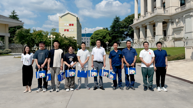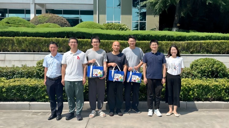 南京海陵黨支部書記李靜、黨支部副書記車越、財(cái)務(wù)部部長(zhǎng)郭垂來(lái)代表工廠慰問(wèn)奮戰(zhàn)在一線的員工,為他們送上防暑禮包。