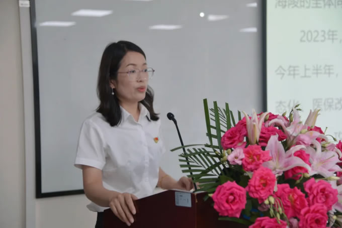海陵黨支部書記、海陵工廠廠長助理李靜做出了以《以學(xué)鑄魂,終身成長,爭做標(biāo)桿,在揚子江新征程上跑出海陵風(fēng)采》為題的海陵藥業(yè)2023年中工作報告。報告總結(jié)了海陵人2023上半年開拓創(chuàng)新的成果,更為海陵明確了下半年的工作方向。