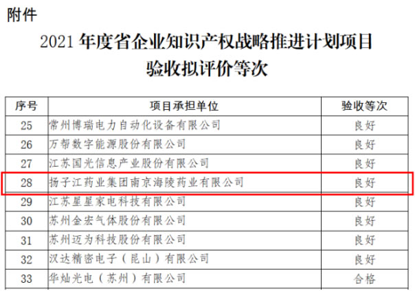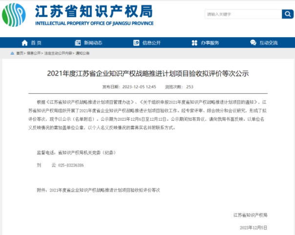 近日,江蘇省知識產(chǎn)權局公示了江蘇省企業(yè)知識產(chǎn)權戰(zhàn)略推進計劃項目驗收擬評價等次名單,南京海陵成功通過項目驗收,為企業(yè)高質量發(fā)展奠定基礎。