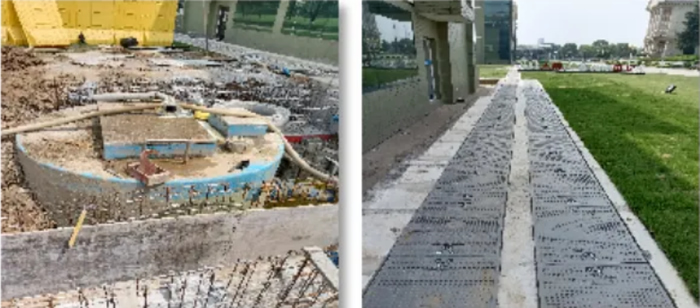 2022年6月,薛永峰開始將自己設(shè)想的畫面細(xì)化落實(shí),項(xiàng)目正式立項(xiàng)。前期的調(diào)研設(shè)計(jì)工作是項(xiàng)目順利落地的保障。海陵草坪之下,是二十年來“勤懇”運(yùn)行的暗管、電纜和壓力管道,盡管有圖紙可供參考,但畢竟年份久遠(yuǎn),實(shí)際的情況只有現(xiàn)場勘察才能確認(rèn)。而施工方案的設(shè)計(jì)既要滿足海陵同步使用同步改造的需求,又需要便于后期對草品美觀度的恢復(fù),使之符合廠區(qū)整體的環(huán)境風(fēng)格。薛永峰關(guān)注著設(shè)計(jì)圖的每一個細(xì)節(jié),并對設(shè)計(jì)單位提出改進(jìn)意見。項(xiàng)目進(jìn)度穩(wěn)步推進(jìn)。
