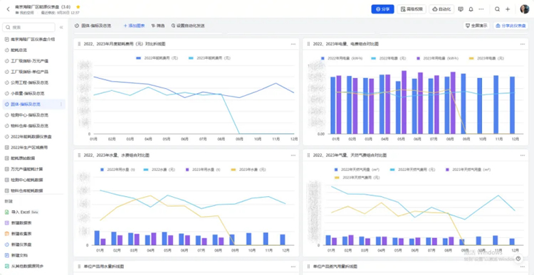 最終完成的儀表盤,改變了廠區(qū)能耗數(shù)據(jù)收集困難、分析困難、及時(shí)性低的問題。通過儀表盤這一新工具將原本獨(dú)立的數(shù)據(jù)整合起來,橫可看每月數(shù)據(jù)變化,縱可查往年同比增長(zhǎng),小可看單體設(shè)備耗能,大可覽全廠能耗起伏。在海陵實(shí)現(xiàn)能源精細(xì)化管理、節(jié)能減排和成本控制目標(biāo)的道路上給予了幫助。項(xiàng)鈺茹還帶著這個(gè)儀表盤參與了9月20日的海陵飛書案例大賽,取得了二等獎(jiǎng)的好成績(jī)。